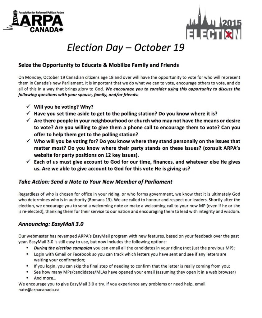 October 27, 2015The Association for Reformed Political Action (ARPA) Canada is a non-profit organization devoted to… Read More