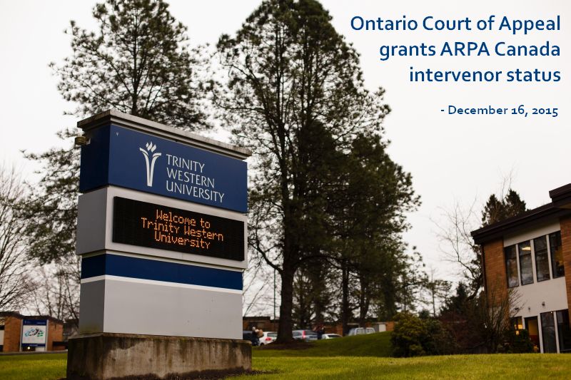 ARPA heading to Ontario Court of Appeal for Trinity Western University