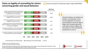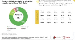 This varied response was also reflected in a recent national survey conducted by Nanos Research for the Justice Centre for Constitutional Freedoms. The survey covered a number of aspects of counselling regarding sexuality (for both adults and children).