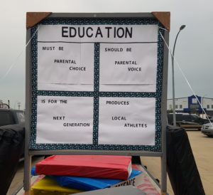 We had our float in the parade along with the Local ARPA Group. Our sign read Education; Must be Parental Choice, Should be Parental Choice, Is for the Next Generation, Produces Local Athletes. We received a lot of positive comments, thumbs up, and clapping. One person said, “Look Parental Choice, that’s what we need.” We did not receive any negative comments that I know of.