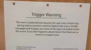 RK: So to understand how the trigger warning came about we have to go back to last spring where we held an event. Every spring, our club tries to have kind of a public display in order to show that we’re still around and that this discussion needs to happen. Last year we did a flag display. As you may be aware, it’s where we have 10,000 pink and blue flags representing the 100,000 abortions that happen here in Canada (every year.) And when we did this display there was quite a bit of backlash from certain groups of the university (community); a lot of students felt that they were being traumatized and they were reliving difficult circumstances. There was a counter-protest and a lot of flak was thrown at the University for allowing us there.