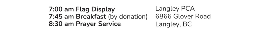 If you are unable to join the March for Life in Victoria, please join us at Christ Covenant Church on May 8 for a Pro-life Flag Display and Prayer Breakfast.