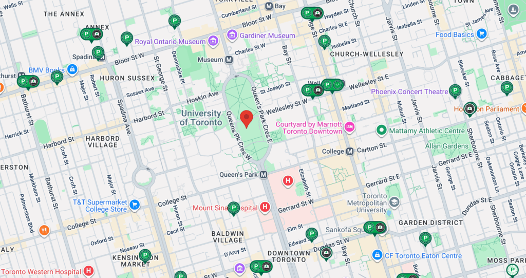 TTC: Take the Line 1 subway or 506 streetcar to Queen’s Park Station
