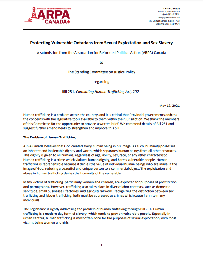 Protecting Vulnerable Ontarians from Sexual Exploitation and Sex Slavery