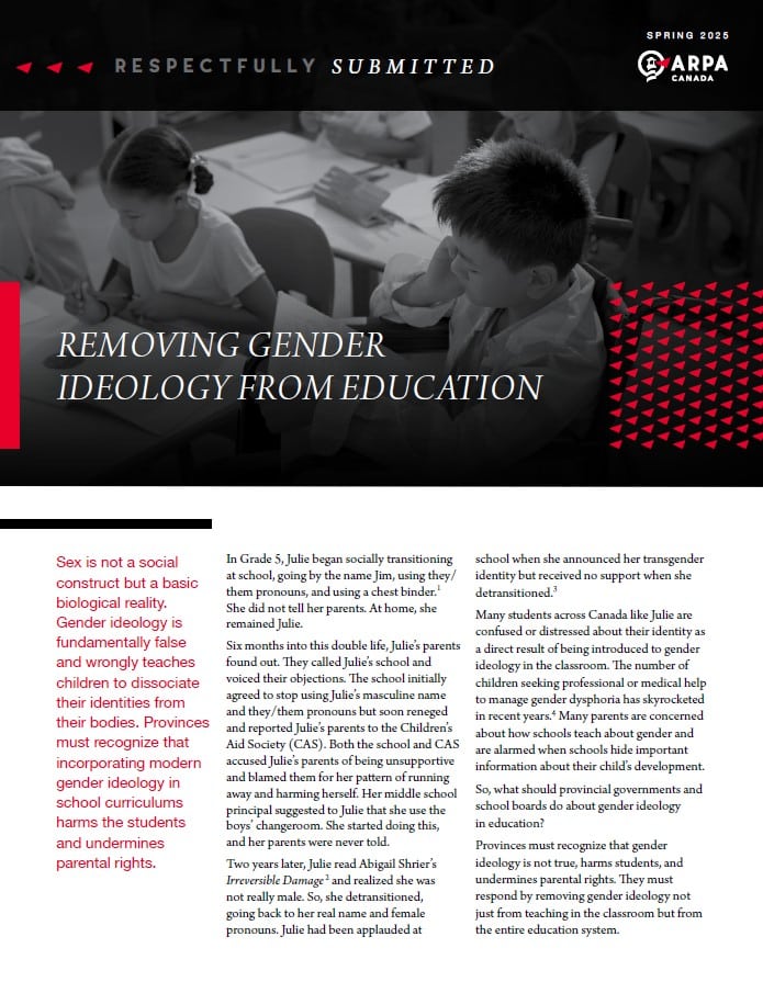 Provinces must recognize that gender ideology is not true, harms students, and undermines parental rights. They must respond by removing gender ideology not just from teaching in the classroom but from the entire education system.