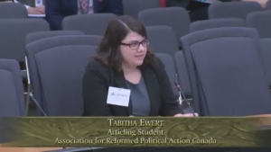 “Censoring speech in certain areas, simply because you may not agree with that speech, is unconstitutional and violates free expression in the public square,” said Tabitha Ewert, a recent law graduate and articling student for the Association for Reformed Political Action (ARPA) Canada. Ewert presented to the Standing Committee on General Government during the one-day hearing on Bill 163. “In passing Bill 163, the Ontario government has opened themselves to further constitutional challenges in court.”
